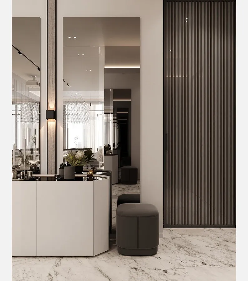 Проект полностью реализован Студией Александра Акименкова: разработка дизайн-проекта, ремонтно-отделочные работы, комплектация и наполнение интерьера, авторский и технадзор