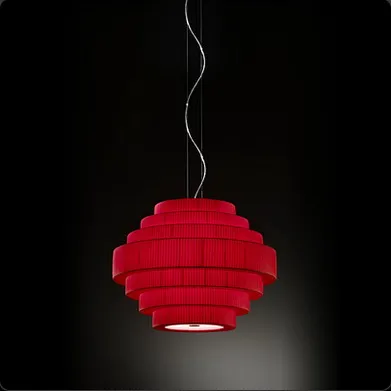 Абажур из плиссированной ткани красного цвета.