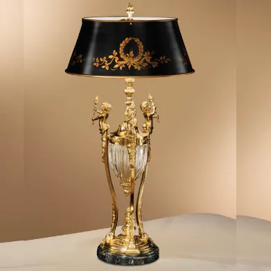 [PREVIEW_TEXT] => Светильник настольный. Основание - черный мрамор, отделка арматуры - состаренное французское золото или состаренная бронза, темная матовая бронза, окисленная состаренная бронза, патинированная латунь, сусальное золото, сусальное серебро, полированный никель, позолота или глянцевая позолота + хрусталь, рассеиватель - металл, декорированный вручную.