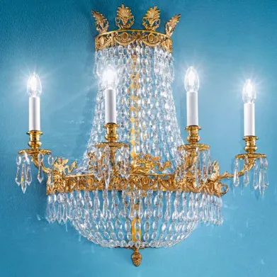 [PREVIEW_TEXT] => Светильник настенный. Отделка арматуры - французское золото, подвесы - хрусталь.