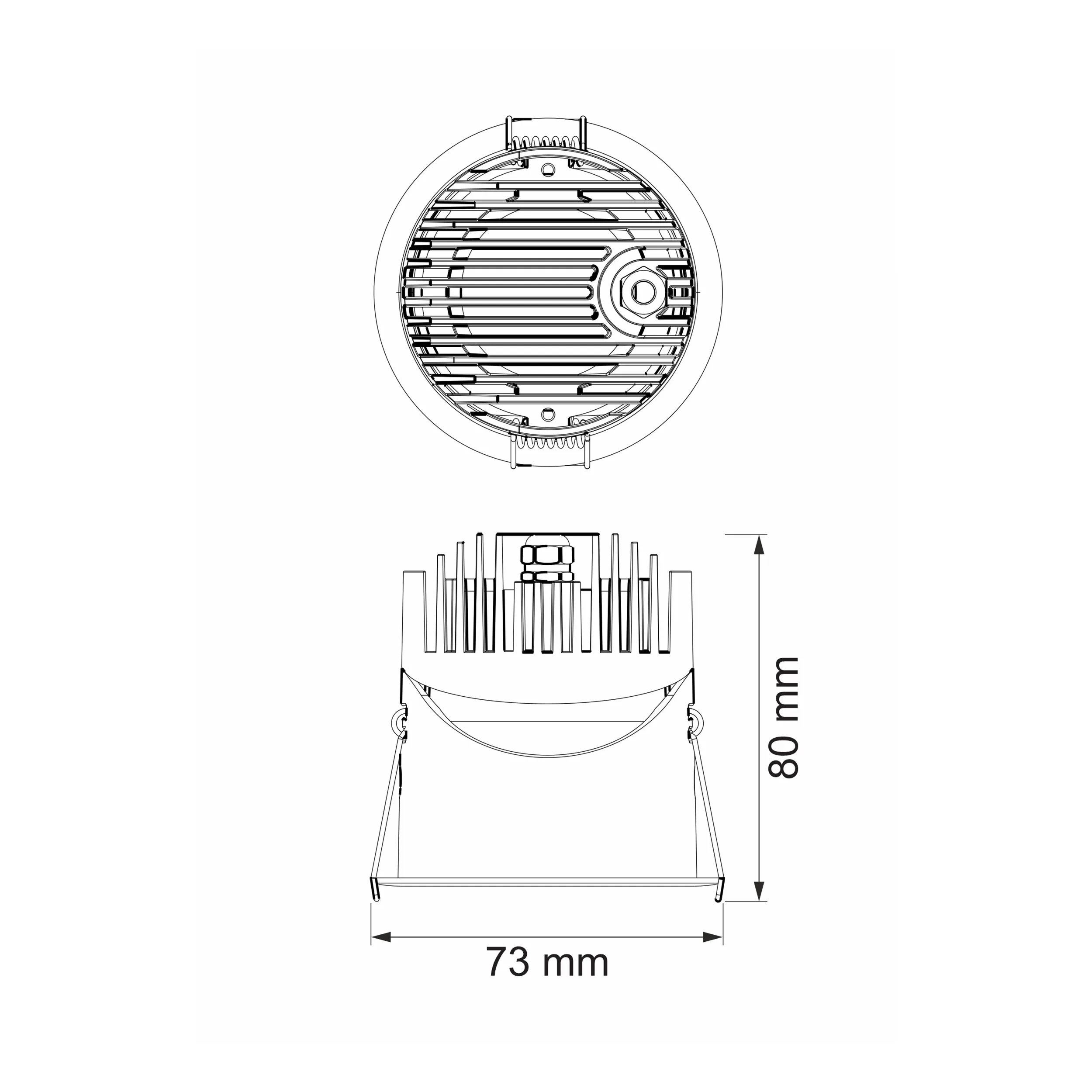 Встраиваемый светодиодный светильник, мат. золото, 220V, 10W, 3000K, 800Lm, 36°, CRI>90, IP65, Ø монтажного отверстия 65 мм, Ø видимой части 73 мм, высота 80 мм
