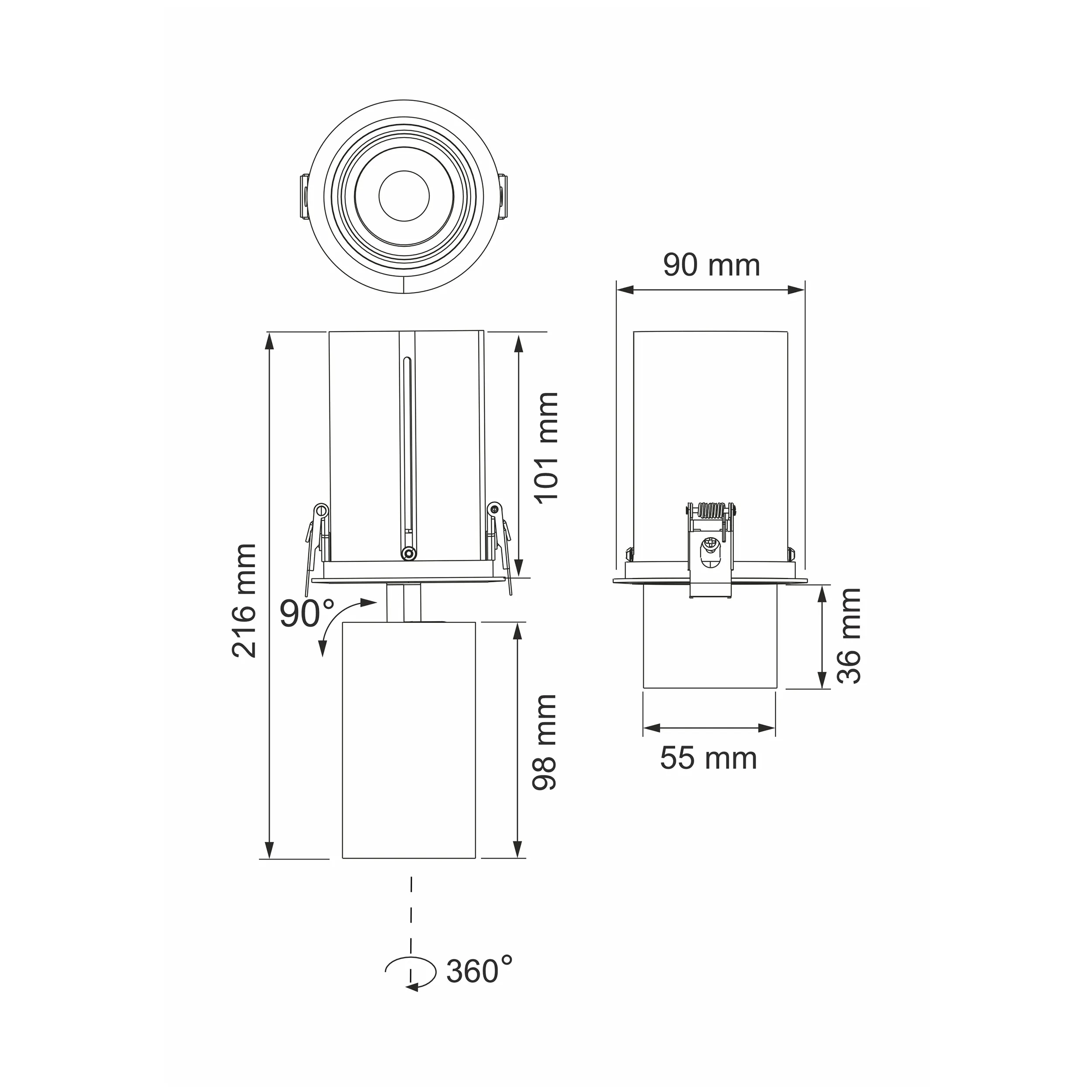 Встраиваемый светодиодный спот с выдвижным механизмом, черный, 220V, 15W, 3000K, 1300Lm, 36°, CRI>90, IP20, макс. высота в выдвинутом положении 115 мм, мин. высота в выдвинутом положении 36 мм, высота запотолочной части 101 мм, высота плафона 98 мм, Ø плафона 55 мм