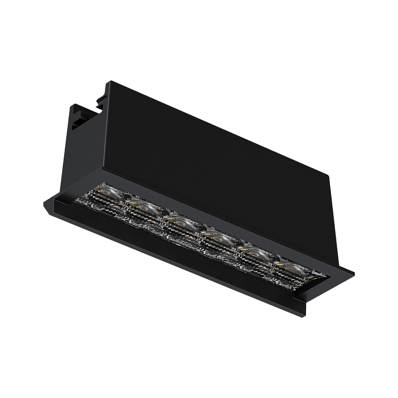 Встраиваемый светодиодный светильник, черный, 220V, 10W, 3000K, 891Lm, wallwasher, CRI>90, IP20, монтажное отверстие (прямоугольное) 108х27 мм, размер видимой части 112х37, высота 45 мм