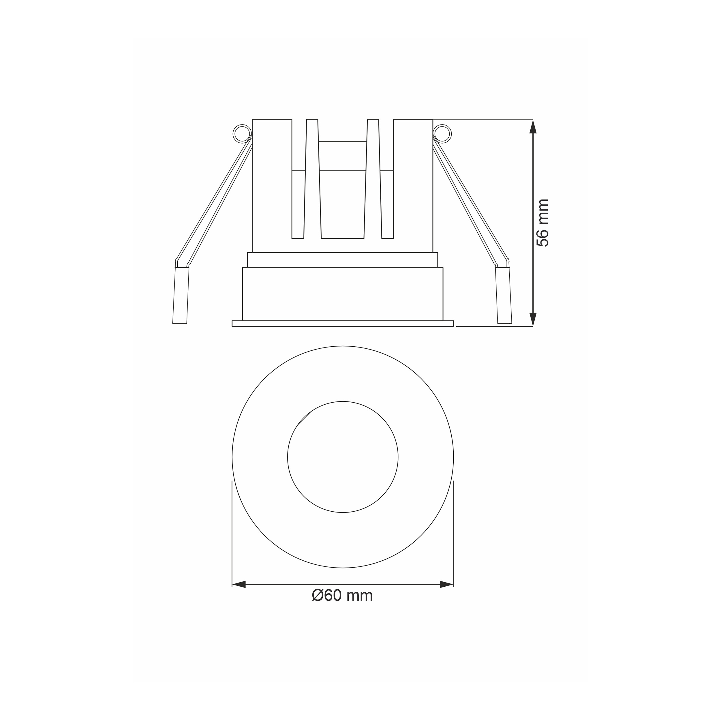 Встраиваемый светодиодный светильник, белый, 220V, 8W, 3000K, 640Lm, 36°, CRI>90, IP44, монтажное отверстие 55 мм, Ø видимой части 60 мм, высота 56 мм