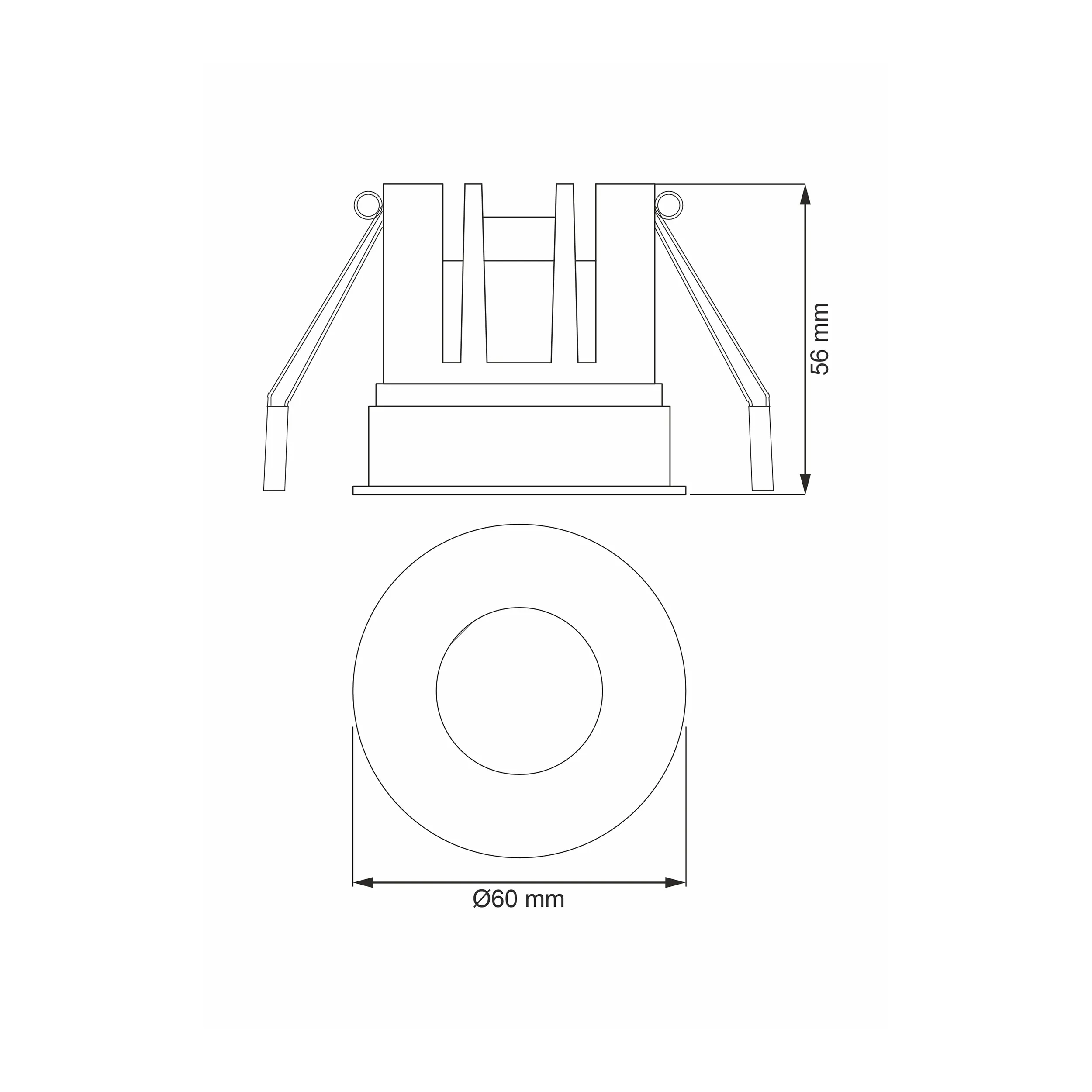 Встраиваемый светодиодный светильник, черный, 220V, 8W, 3000K, 640Lm, 36°, CRI>90, IP44, монтажное отверстие 55 мм, Ø видимой части 60 мм, высота 56 мм
