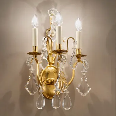 Светильник настенный. Отделка арматуры - состаренное французское золото, подвесы - богемский хрусталь.