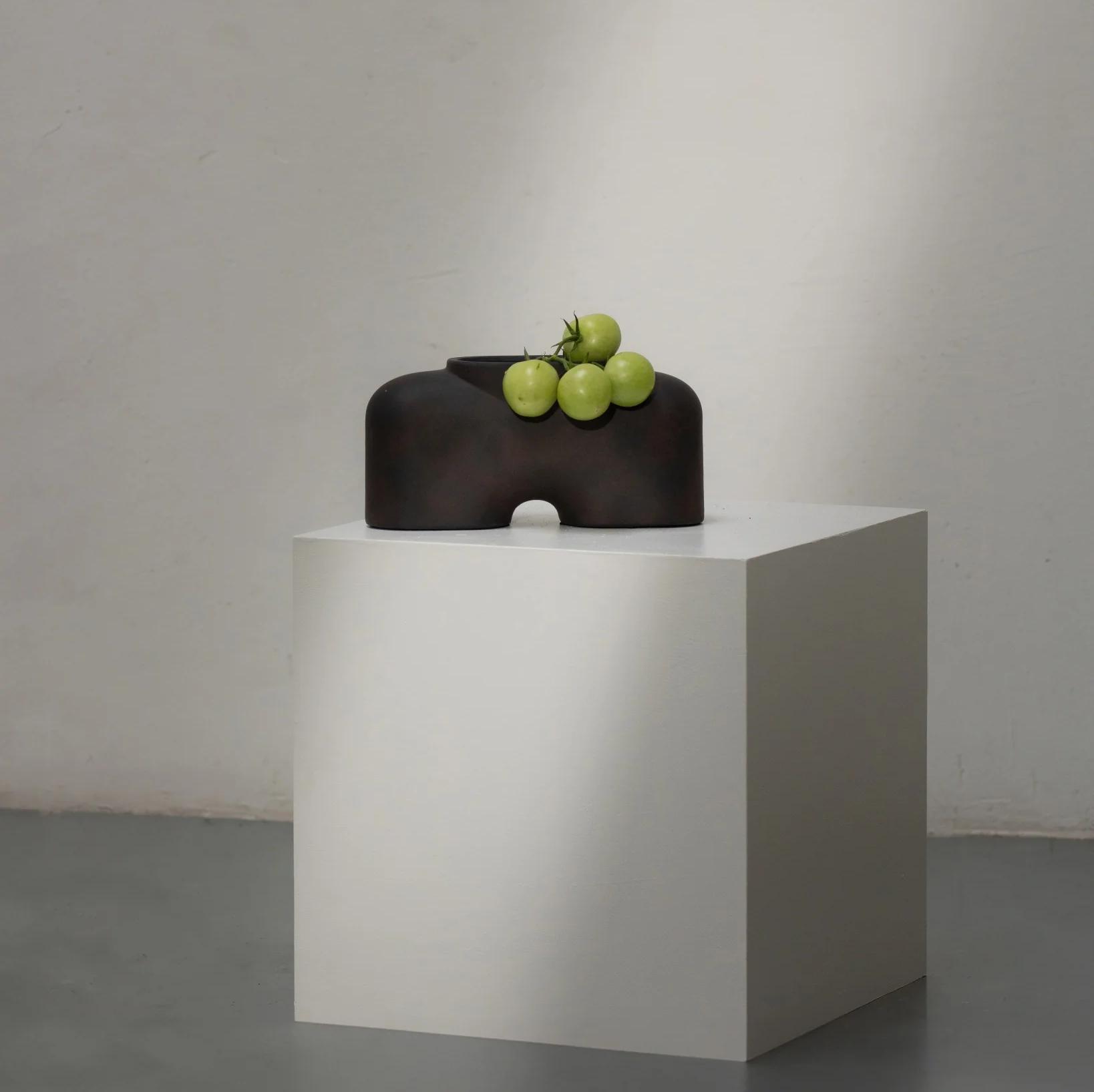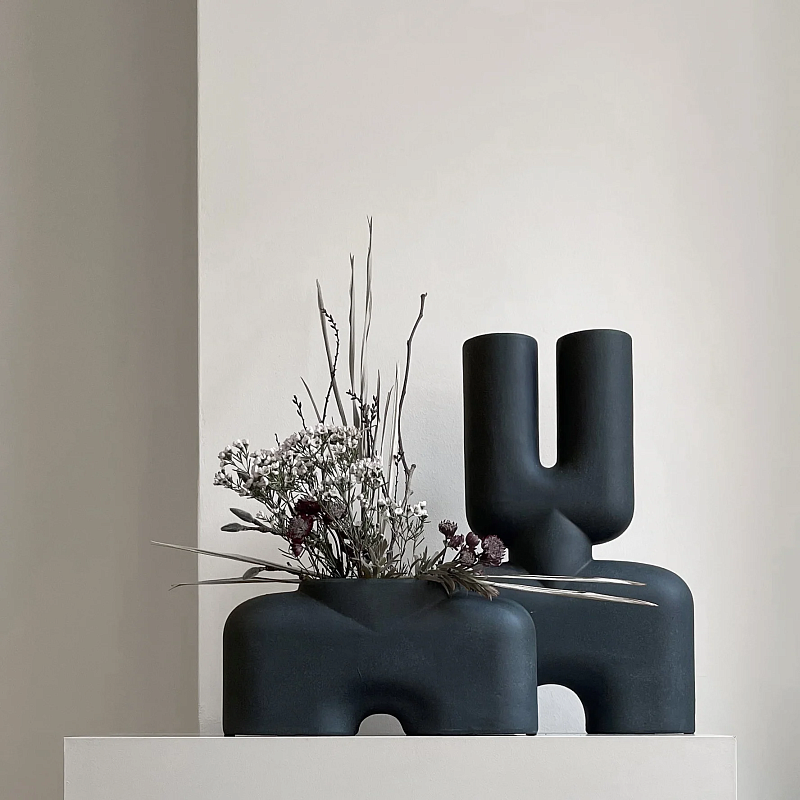 Керамическая ваза тёмно-серого цвета для создания композиций из сухих цветов и декора помещения.
