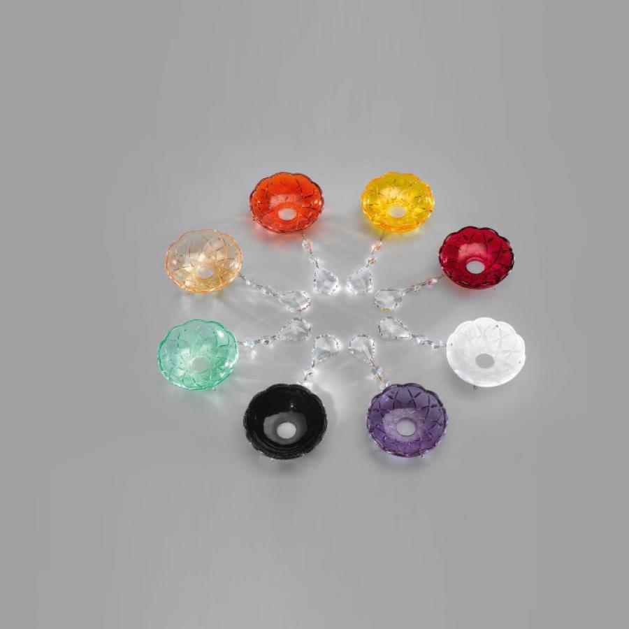 Доступные цвета хрусталя: янтарь, оранжевый, желтый, красный, белый, фиолетовый, черный, зеленый.
