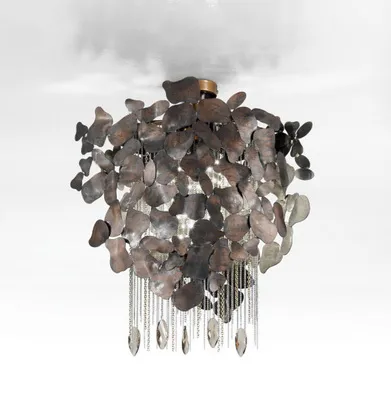 Арматура и рассеиватель выполнены из металлических пластинок в коричневой состаренной отделке.