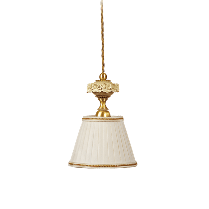 Светильник подвесной. Отделка арматуры - серебро, декор - белый фарфор, рассеиватель - текстиль.