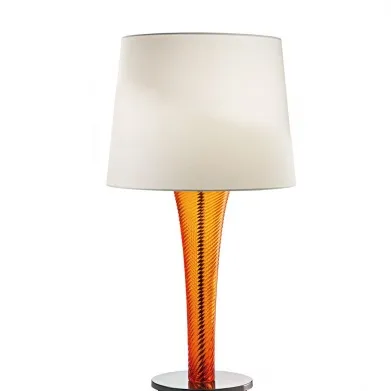 Ножка лампы - выдувное рифленое муранское стекло. Цвет оранжевый.