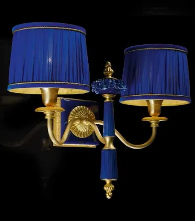 [~DETAIL_TEXT] => Светильник настенный. Отделка арматуры - золото, декор - фарфор синего цвета, рассеиватель - текстиль.