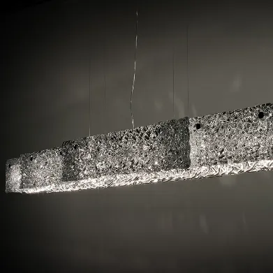 Геометричная форма светильника и стекло ручной работы гармонично сочетаются друг с другом, образуя непередаваемую игру световых бликов. Стекло может быть прозрачное или текстурированное с серебристой внутренней поверхностью. Арматура: хром.