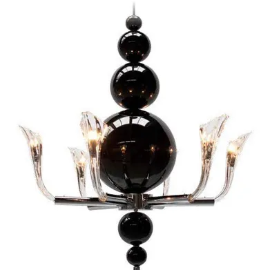 Светильник декорирован стеклянными шарами черного цвета ручной работы.