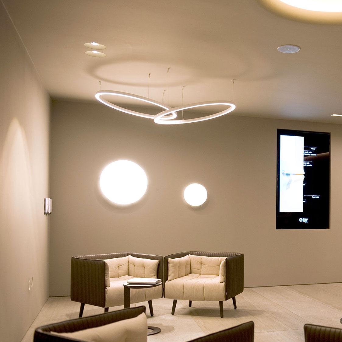 Tour D представляет собой подвесную версию с двойным излучением известной линейки Tour, отличающуюся круглым, синтетическим и строгим дизайном и корпусом из алюминия.