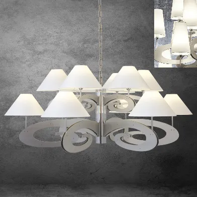 [~PREVIEW_TEXT] => Светильник подвесной. Отделка арматуры - матовый никель, рассеиватели - текстиль.