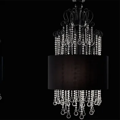 Гладкий абажур из полупрозрачной ткани черного цвета.