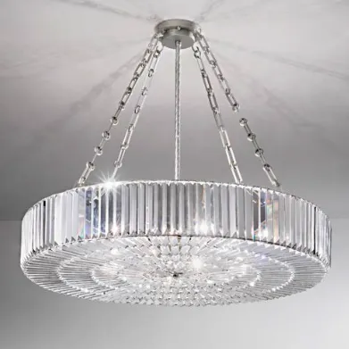 Светильник подвесной. Отделка арматуры - полированный никель, подвесы - хрусталь.