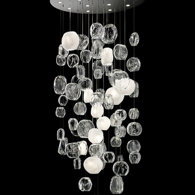 Прозрачные стеклянные и матовые опаловые подвески ручной работы подобны пузырькам воздуха в воде.