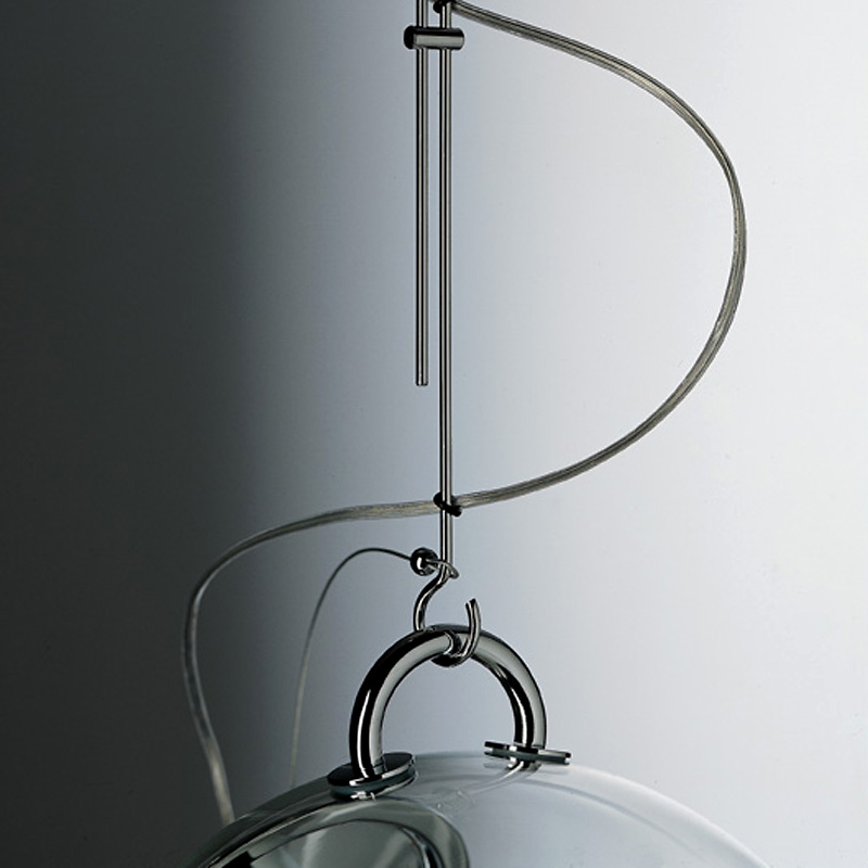 Плафон подвеса выполнен из прозрачного выдувного стекла и имеет форму шара, внутри которого заключена лампочка. Благодаря такому ее расположению, свет мягко и равномерно распространяется в пространстве.