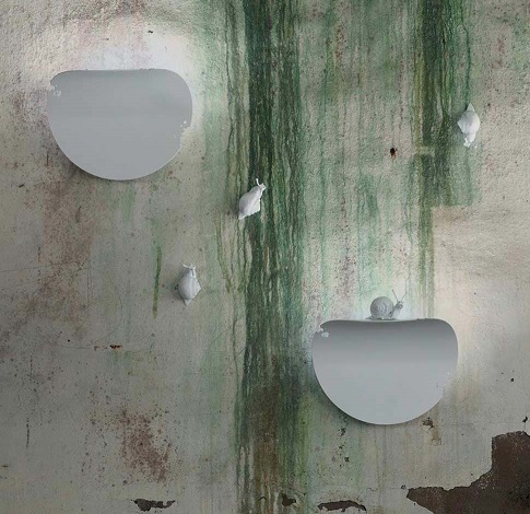 Керамическая улитка ползет по стене в поисках еды. Вместе с ней можно повесить бра AP 115 0B INT, который по форме похож на лист дерева.