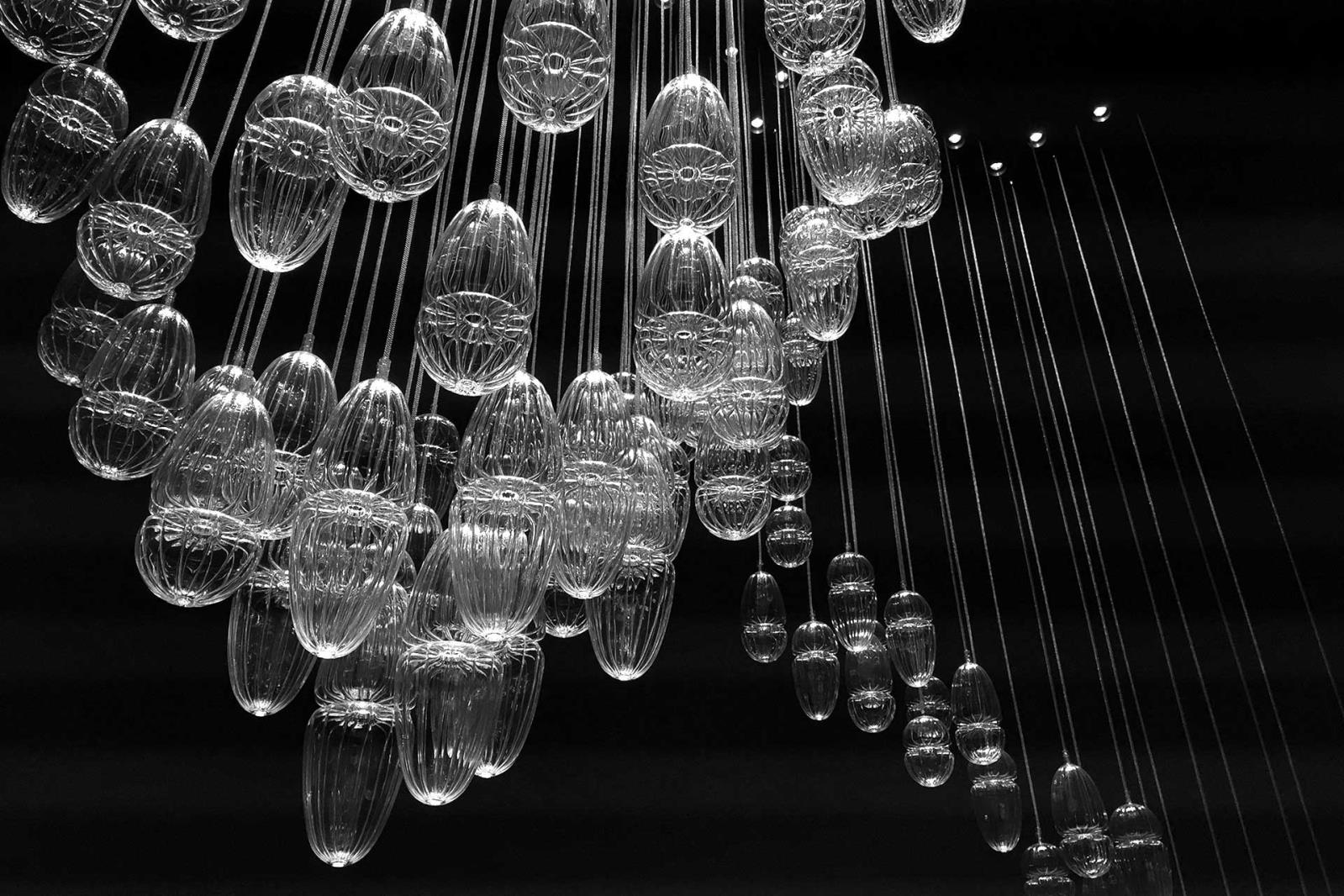 Подвесной светильник Acorn от фабрики Melogranoblu - это изящество и стиль. Плафоны разного диаметра из выдувного вручную стекла, подвешиваются к потолку, на котором вы можете сделать различные варианты встраиваемых светильников.