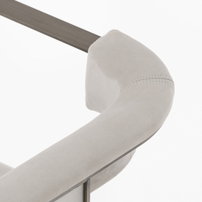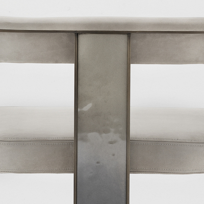 Кресло Alba c металлическим каркасом с отделкой из матовой вороненой латуни. Сиденье и спинка обиты матовой кожей цвета слоновой кости.Стеклянные элементы декора с отделкой La Morra.