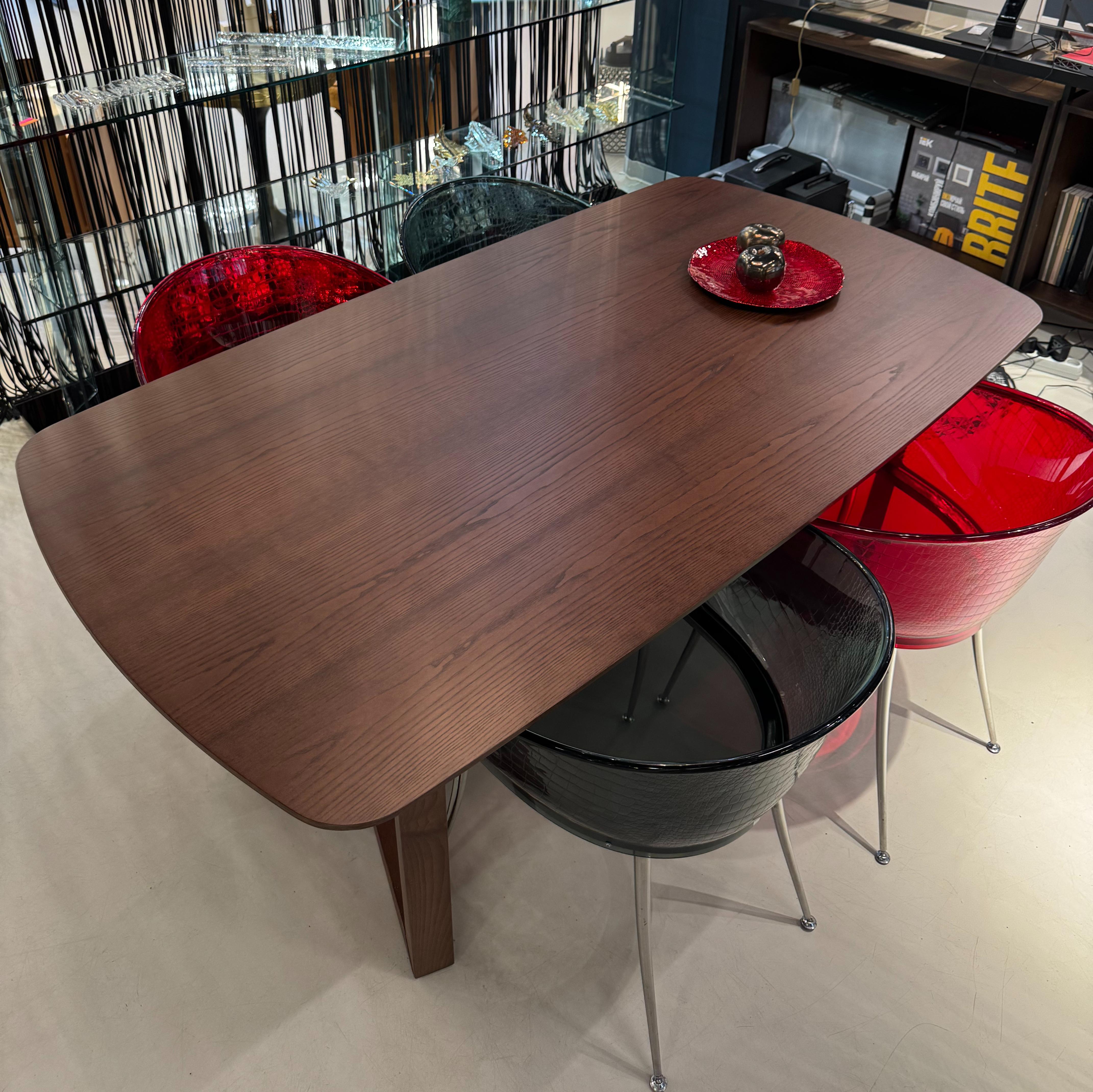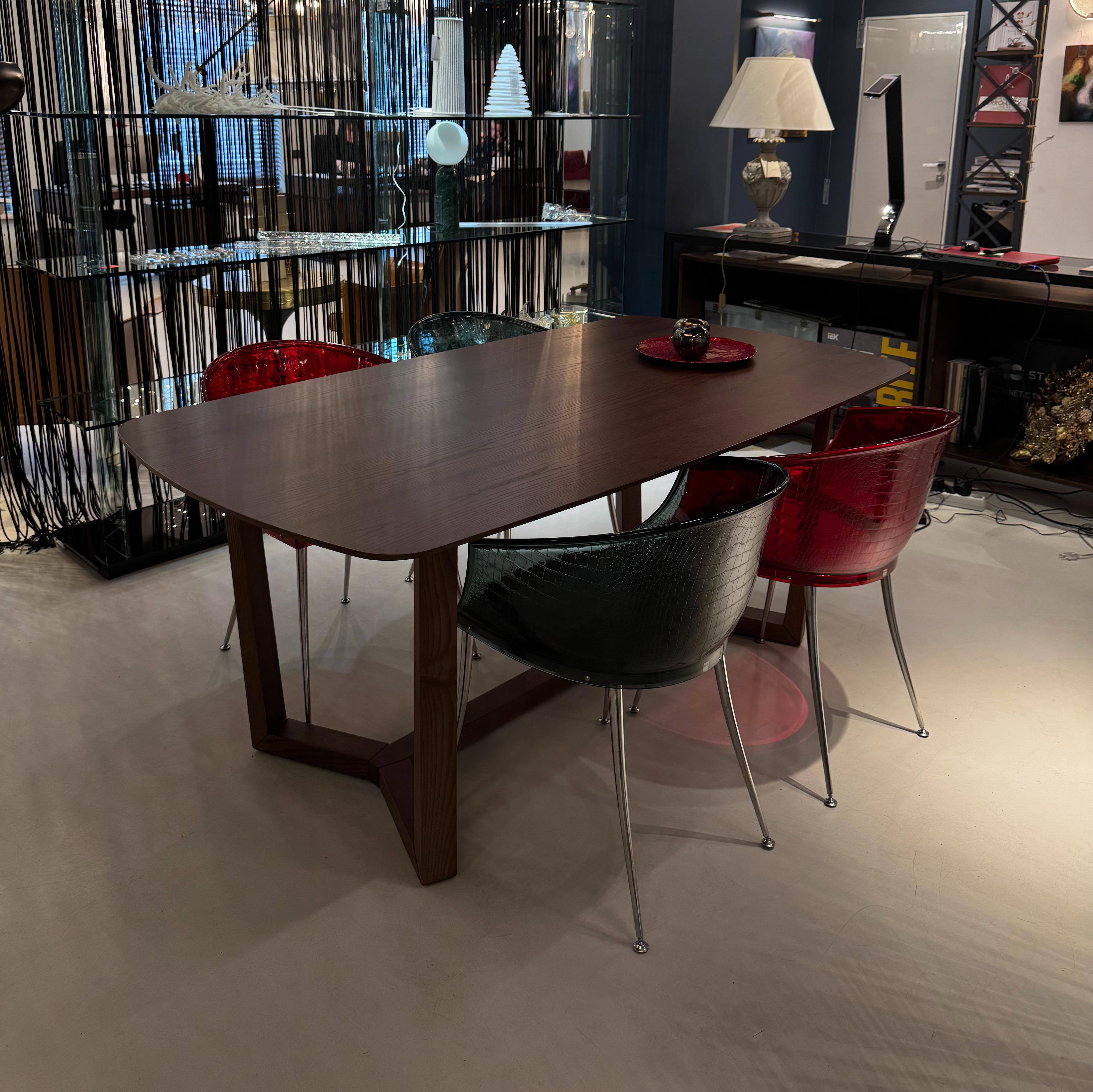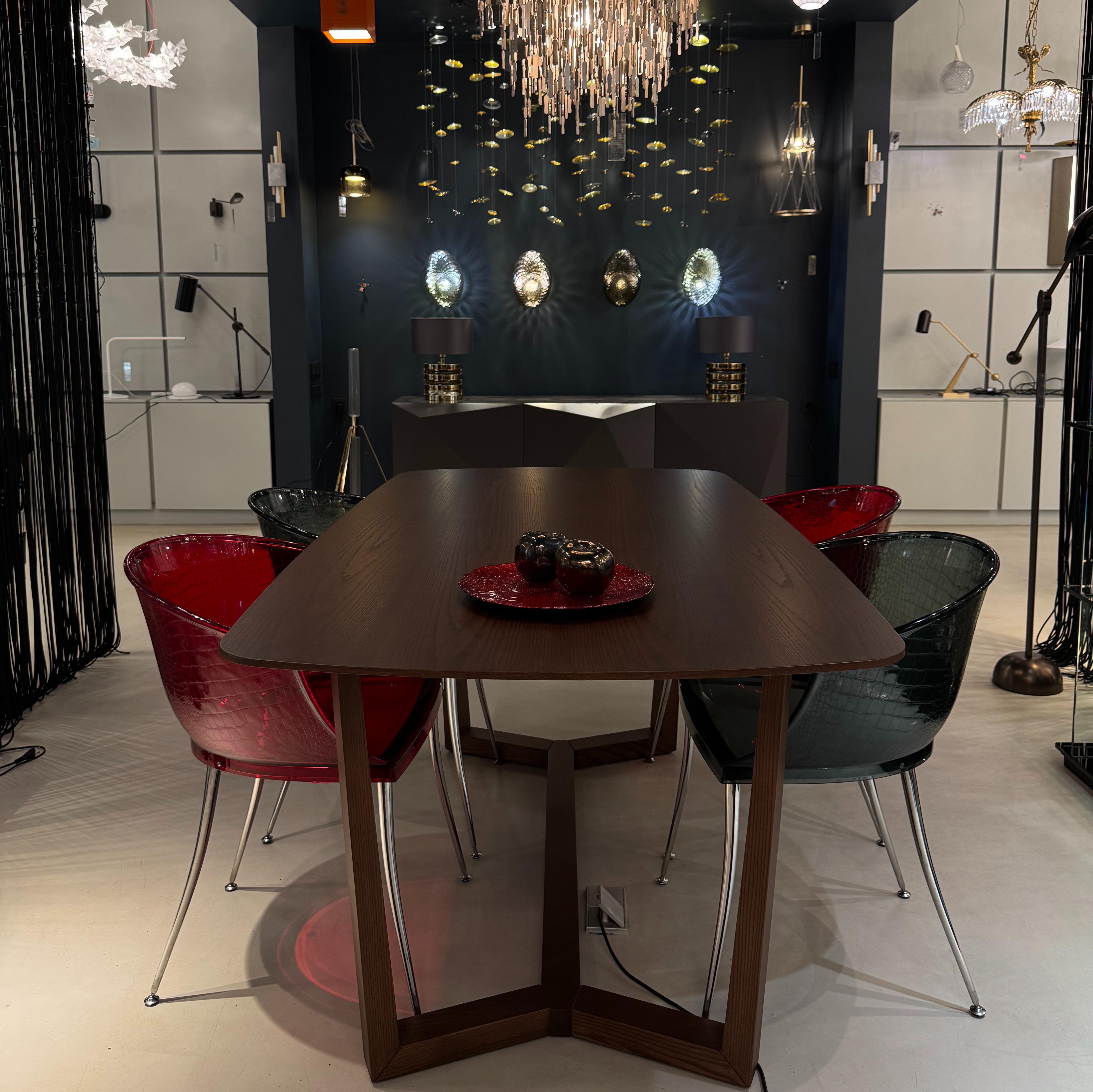 Купить обеденный стол Aliante итальянской фабрики Pacini&Cappellini можно в салоне Lampadario . Представлен в наличии на экспозиции салона в отделке орех каналлето (frassino tinta noce canaletto ).