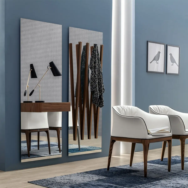 В зеркале Alicante дизайнер Ловадина (Lovadina) решила объединить функции различных предметов в одном дизайне. Квадратное зеркало из цельного стекла теперь может использоваться в качестве вешалки для одежды или оснащаться выдвижным ящиком, который легко адаптируется.