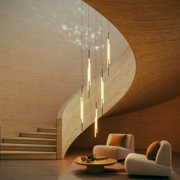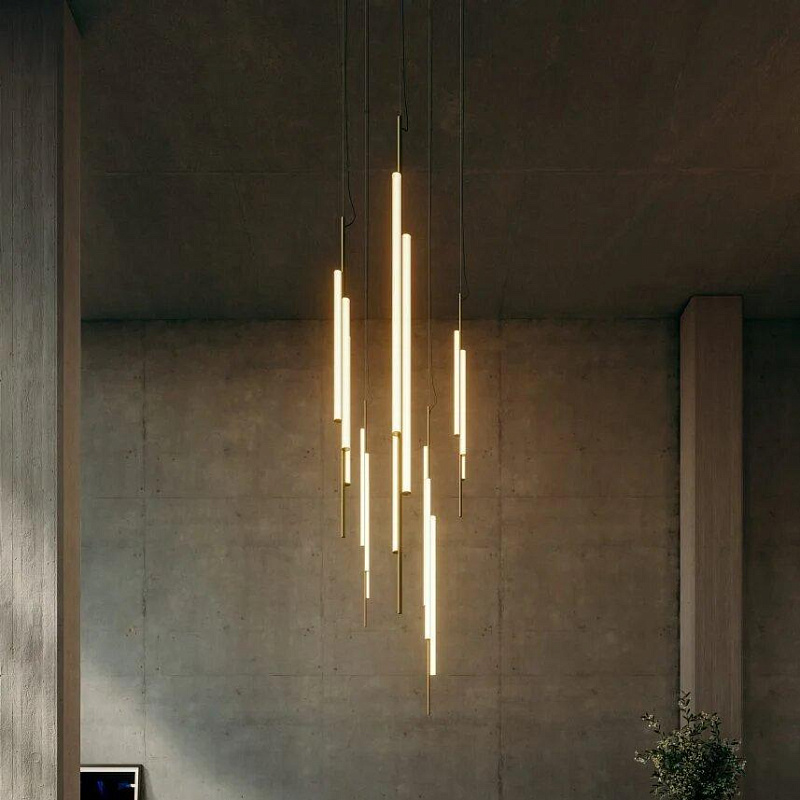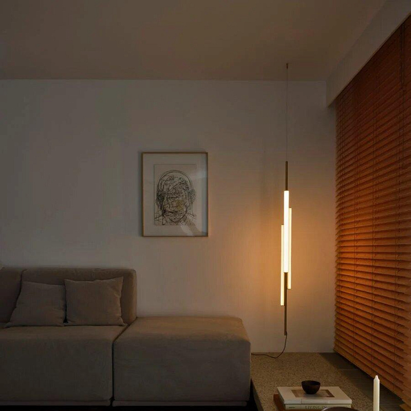 Ambrosia V2 - вертикальная конструкция высотой 235 см, состоящая из двух световых трубок разной длины. Прерывистая линия света - деталь, придающая светильнику легкость и характер. Его дизайн позволяет выбирать освещение, направленное либо на стену для непрямого освещения, либо на основное пространство для прямого освещения. Этот эстетичный и функциональный дизайн также хорошо подходит для домашнего интерьера.