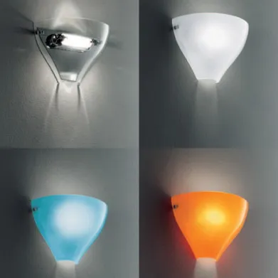 Материалы: дутое стекло, хромированный металл. Цвета: прозрачный, белый, черный, топазовый, янтарный.