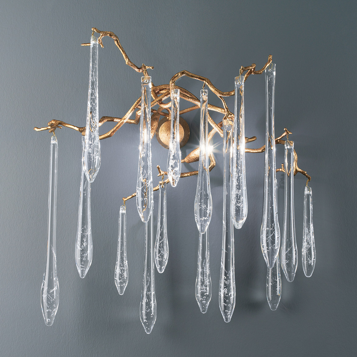 Дизайн коллекции Aqua вдохновлен зимними каплями воды. Коллекция Aqua - это культовый комплект семейства Serip, как по своему вдохновляющему элементу, так и по присущей ей ассоциации с нашей идентичностью, выражающей тесную связь с нашим главным источником вдохновения - природой. Бронзовая структура расширяется переплетающимися ветвями, которые приводят к плавающим стеклянным изделиям, что придает изделию воздушность в сочетании с его тонким и элегантным внешним видом, концепциями, видимыми в мельчайших деталях стеклянных капель. Благодаря нескольким цветовым решениям и вариантам дизайна коллекция Aqua представляет собой изысканное изделие, вдохновленное природой, идеально подходящее для любой концепции.