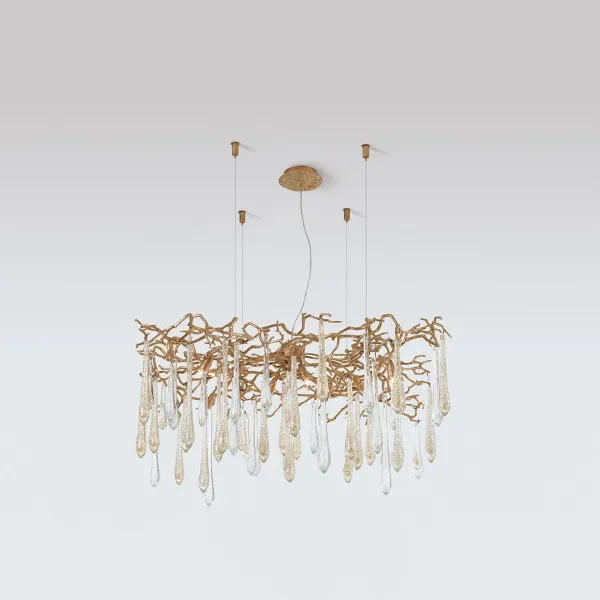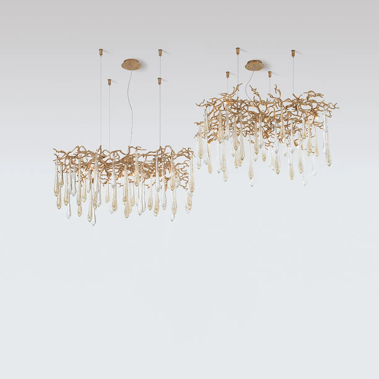 Подвесной светильник Aqua Mantle вдохновлен зимними каплями воды. Коллекция Aqua - это культовый комплект семейства Serip , как по своему вдохновляющему элементу, так и по присущей ей ассоциации с нашей идентичностью, выражающей тесную связь с нашим главным источником вдохновения - природой. Бронзовая структура расширяется переплетающимися ветвями, которые приводят к плавающим стеклянным изделиям, что придает изделию воздушность в сочетании с его тонким и элегантным внешним видом, концепции которого видны в мельчайших деталях стеклянных капель. Благодаря нескольким цветовым решениям и вариантам дизайна коллекция Aqua представляет собой изысканное изделие, вдохновленное природой, идеально подходящее для любой концепции.