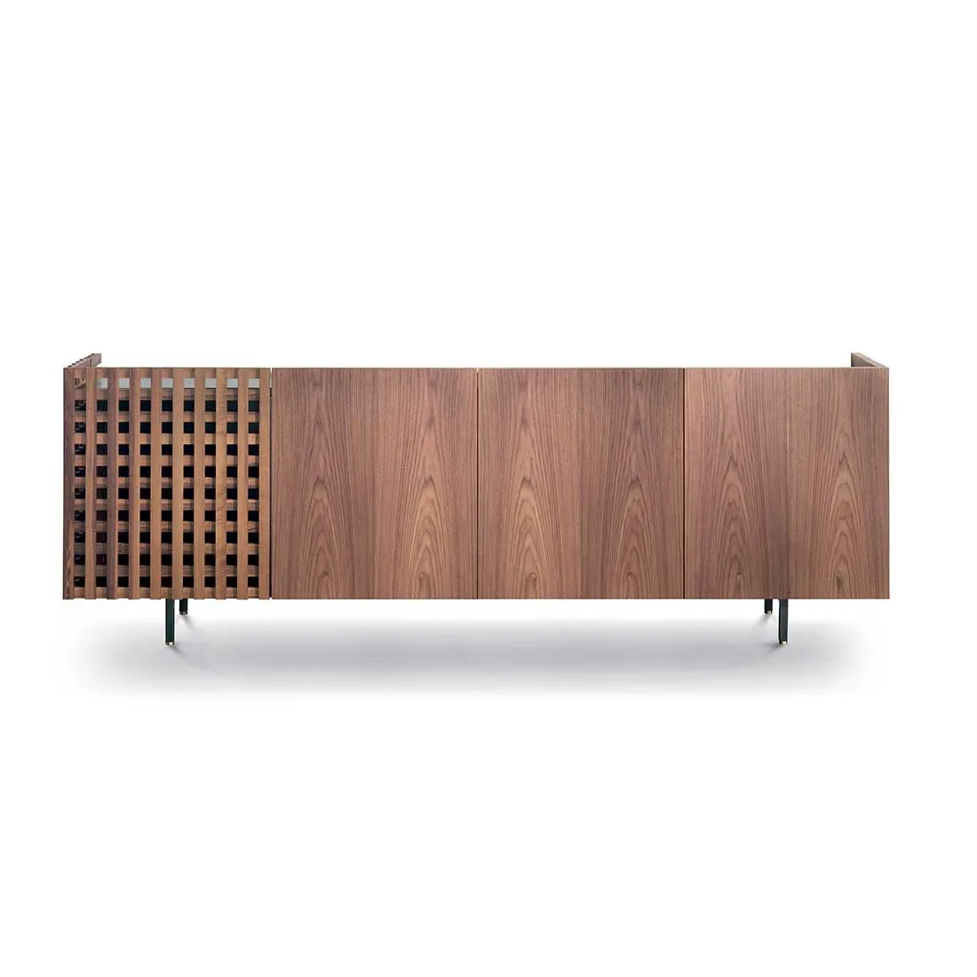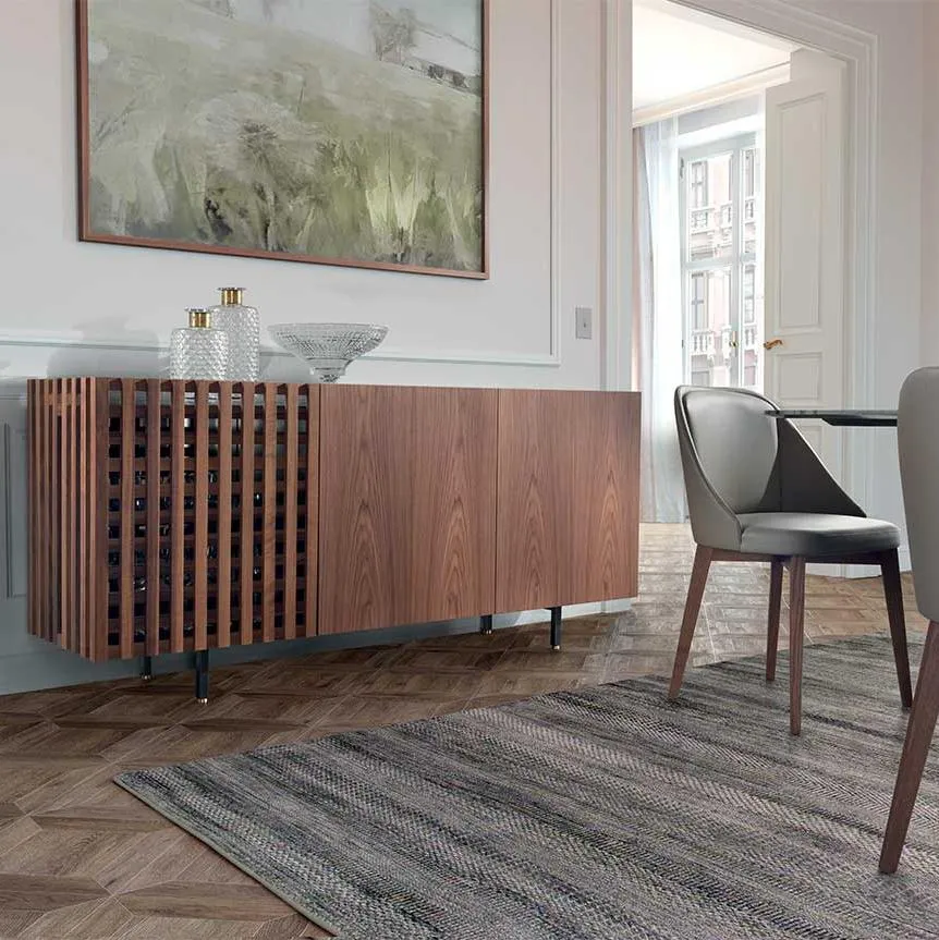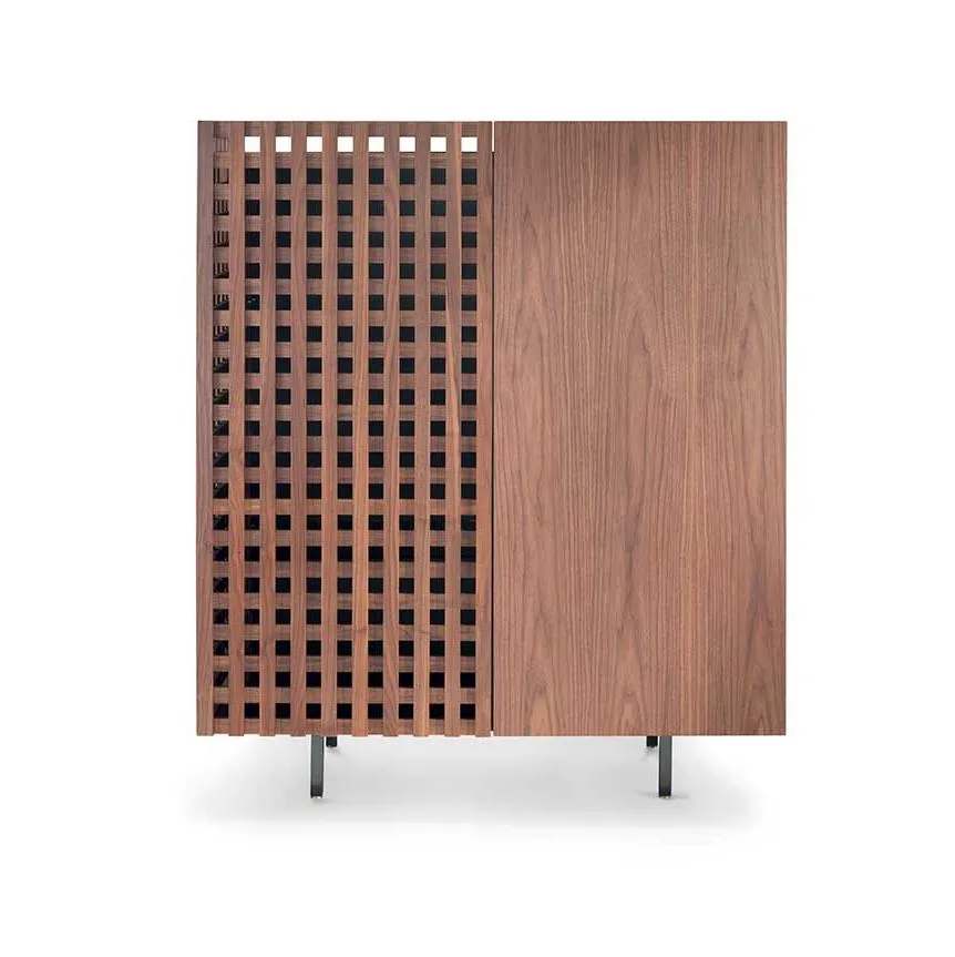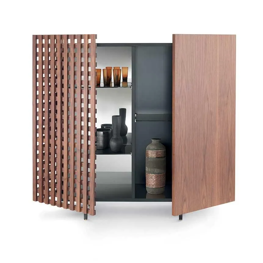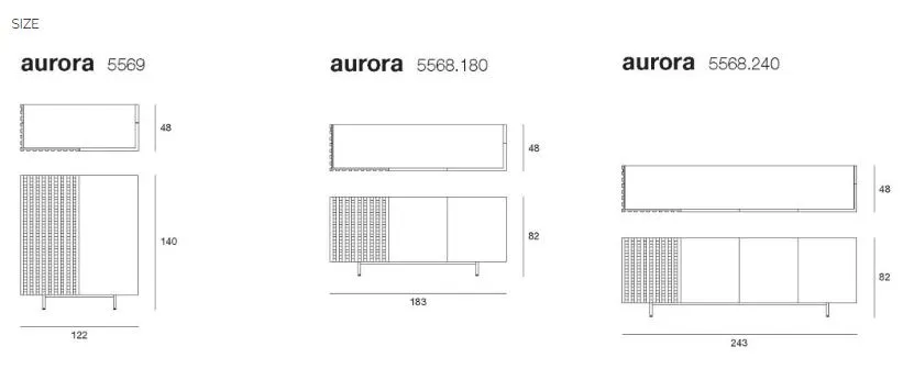 Aurora выпускается в различных вариантах планировки, отличающихся чередованием глухих деревянных дверей и решетчатых проемов. От вертикального шкафа с двумя дверцами до классического комода с тремя или четырьмя дверцами, Aurora отличается угловым открыванием боковых дверей, что является новизной, подчеркивающей внимание к деталям и опыт работы с деревом.