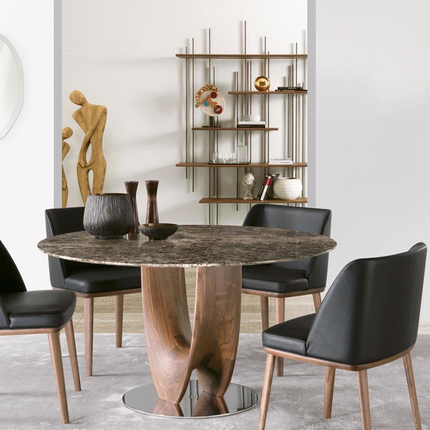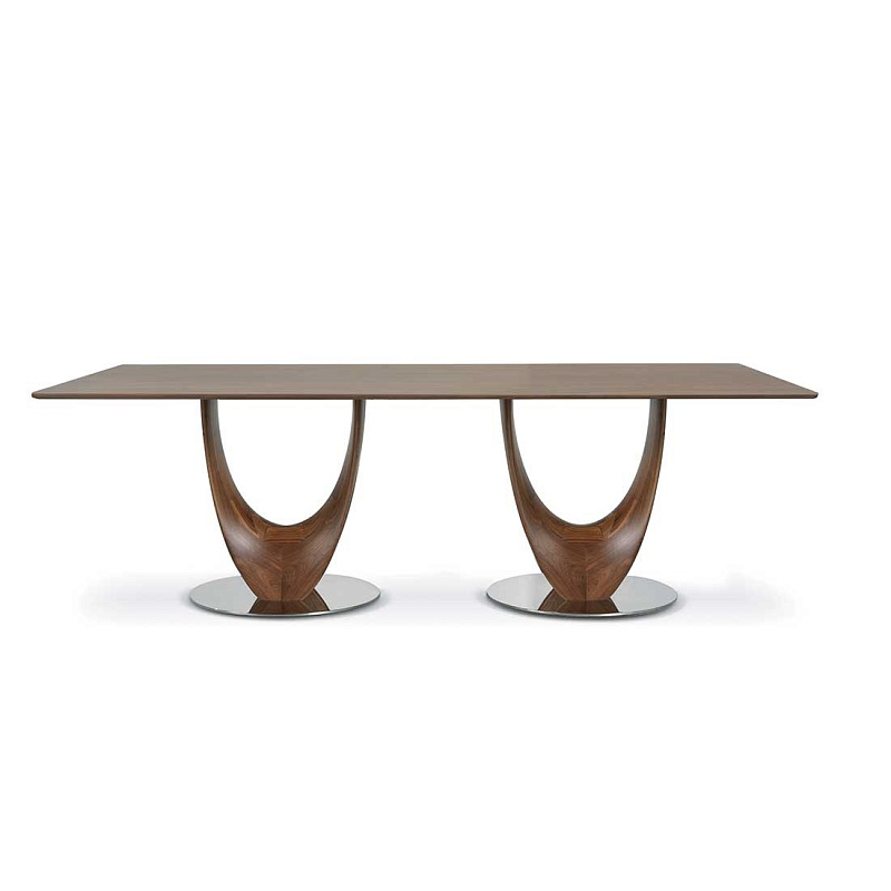 Гармоничное и извилистое основание из массива дерева в сочетании со столешницей различных форм и материалов представляет собой эффективный ответ тем, кто хочет окружить себя мебелью, идеально соответствующей концепции современного дизайна.