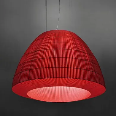 Абажур обтянут полосами супергладкой огнестойкой ткани понже красного цвета.