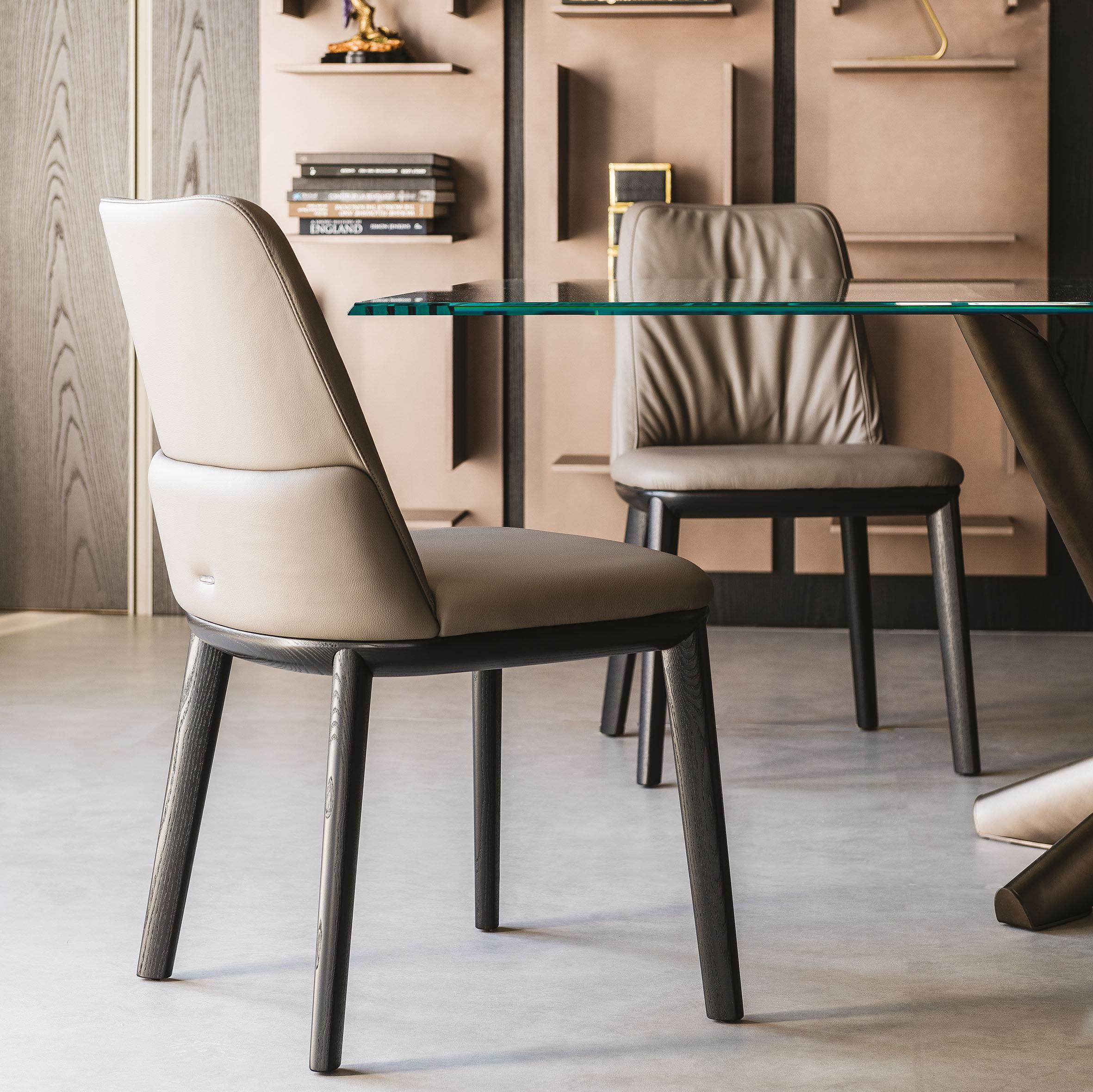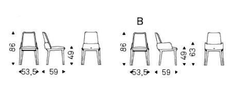 Стул с подлокотниками или без них, с каркасом из натурального ясеня (frame), ясеня, окрашенного грецким орехом Каналетто (french), ясеня, окрашенного обожженным дубом (frRB) или ясеня с открытыми порами матово-черного цвета (fr73).