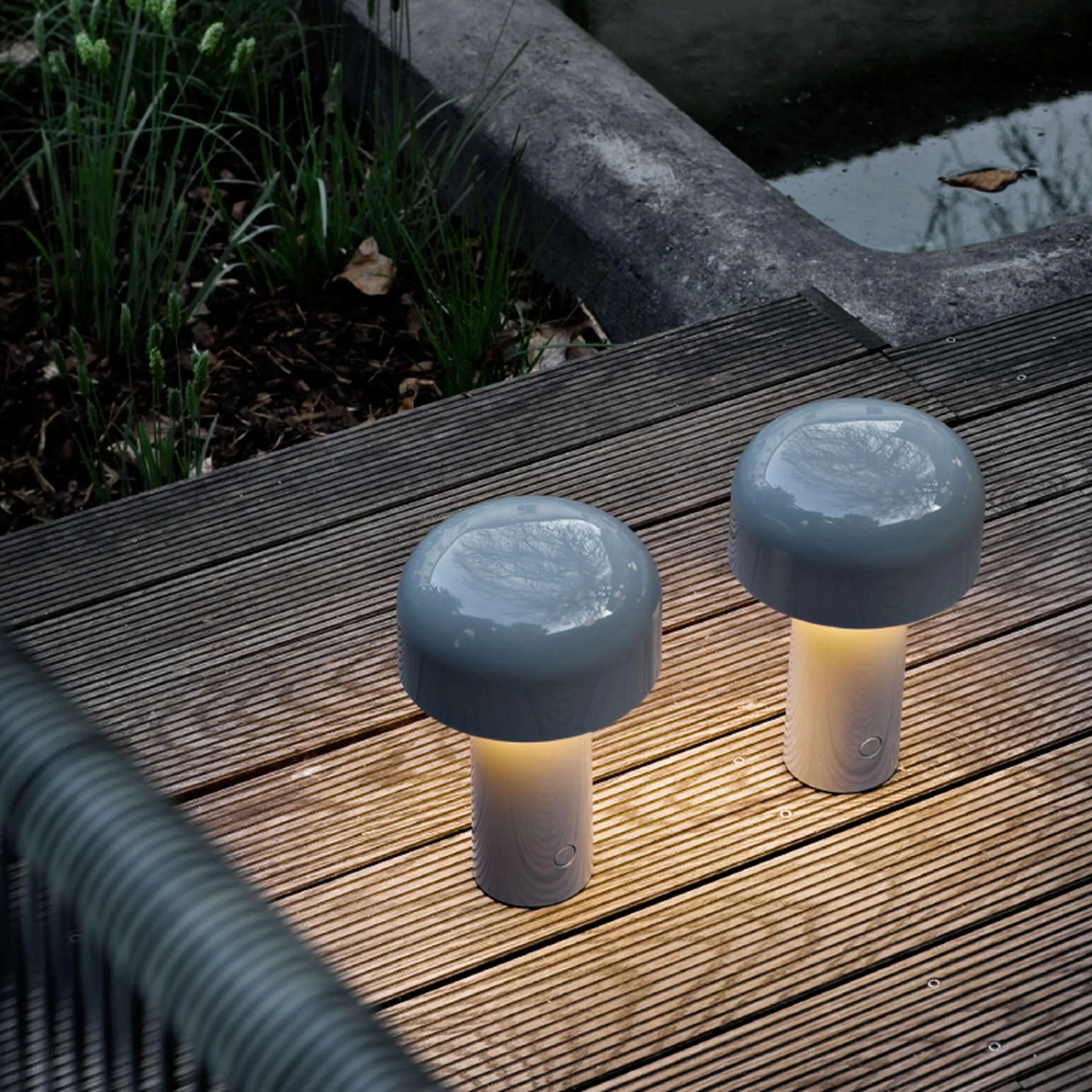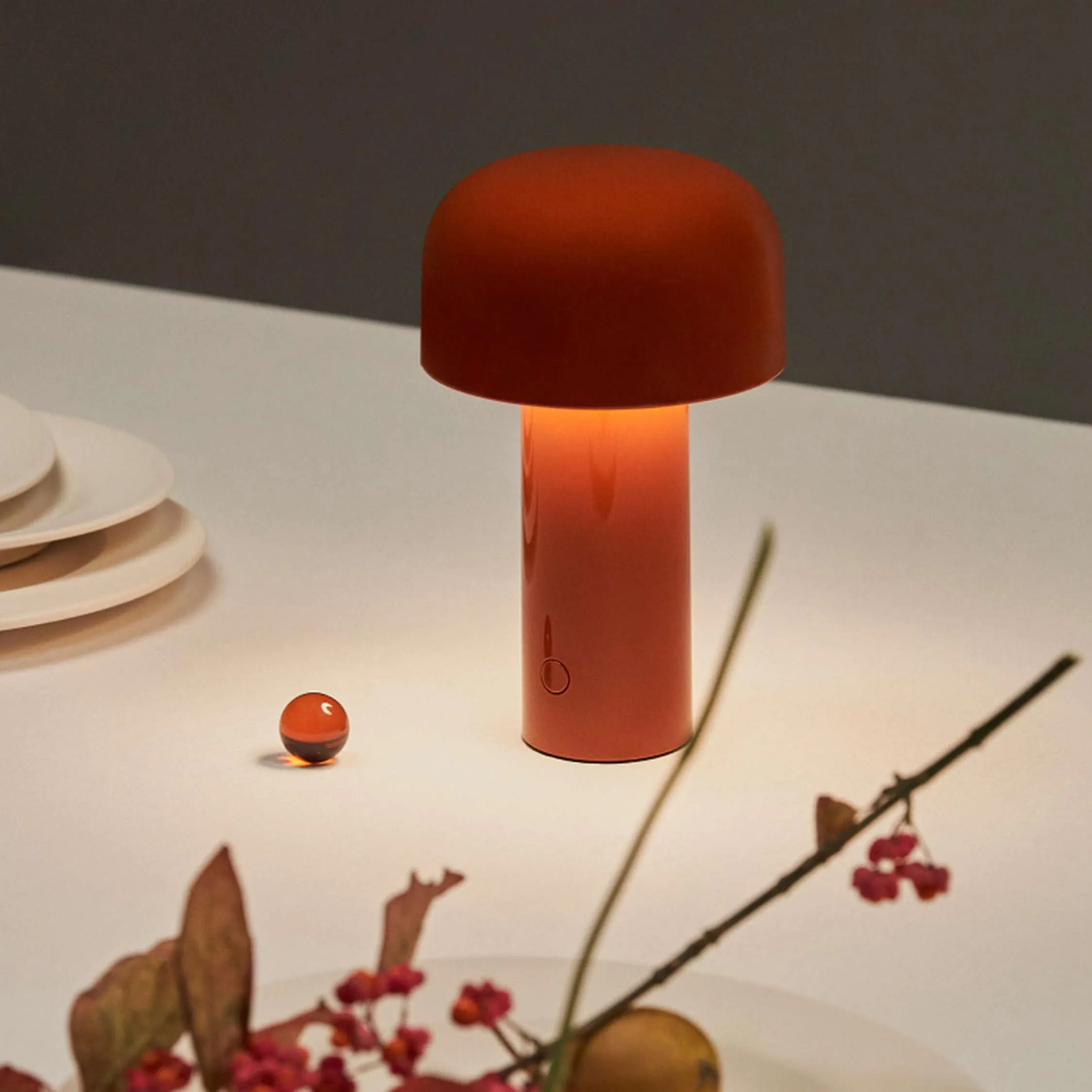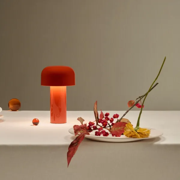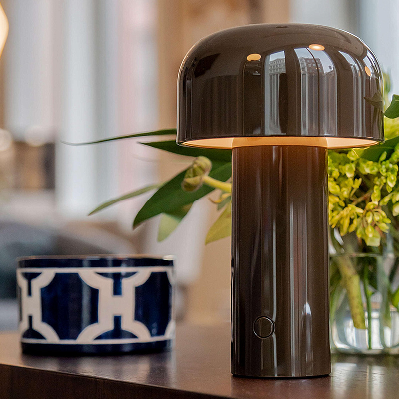 Перезаряжаемый настольный светильник прямого освещения. Основание и плафон выполнены из цветного пластика. Рассеиватель выполнен из опалового пластика с литьевой фотогравировкой. Автономность работы составляет 24 часа, зарядка осуществляется через Micro-USB-C. Кнопочный переключатель, расположенный на основании, обеспечивает 4-ступенчатую регулировку яркости. Индикатор состояния батареи расположен под основанием. В комплект входит кабель для зарядки USB-C длиной 120 см.