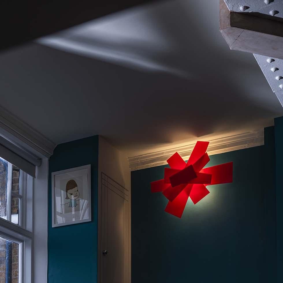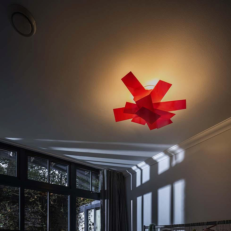 Стильный концептуальный светильник из метакрилата белого или красного цвета.