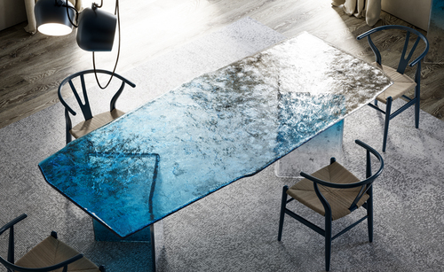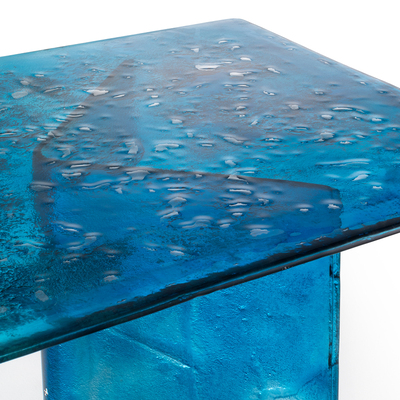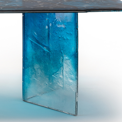 Мебель ручной работы. Столешница и ножки из двухслойного запечённого стекла с неровными краями.