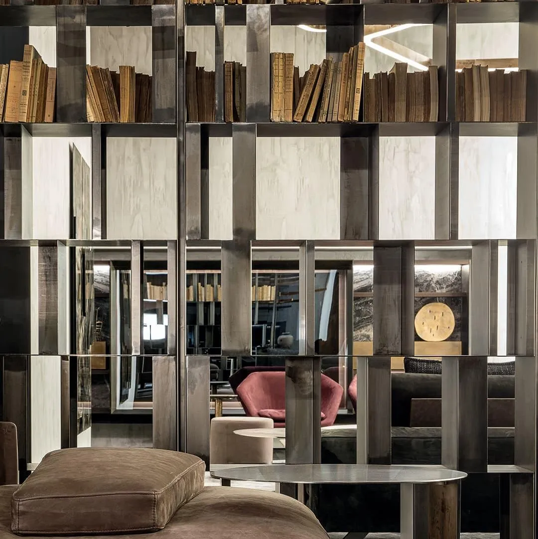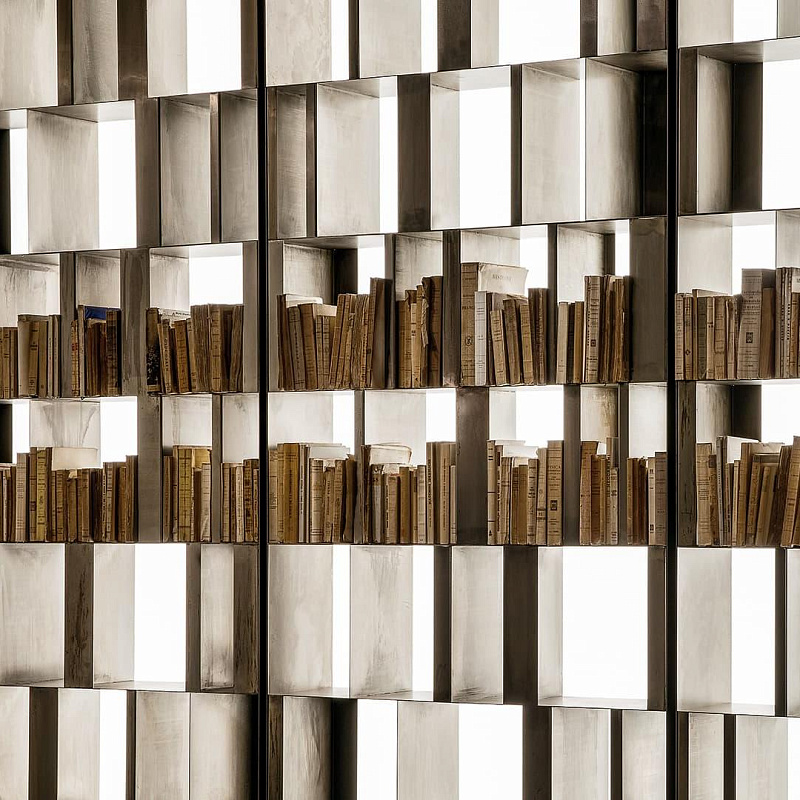Купить модульный книжный шкаф Bistrot итальянской фабрики Henge можно в салоне дизайнерского света Lampadario . Шкаф доступен к предзаказу в цвете полированная платина.