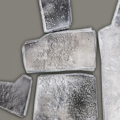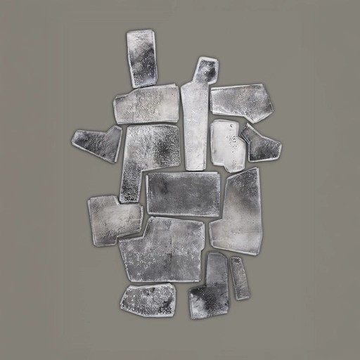 Настенный декор из расплавленного стекла. Настенный декор выполнен из двухслойного обожженного стекла с неровными краями, посеребренного со средней степенью античности. Деревянная конструкция из МДФ, покрытой матовым черным лаком.