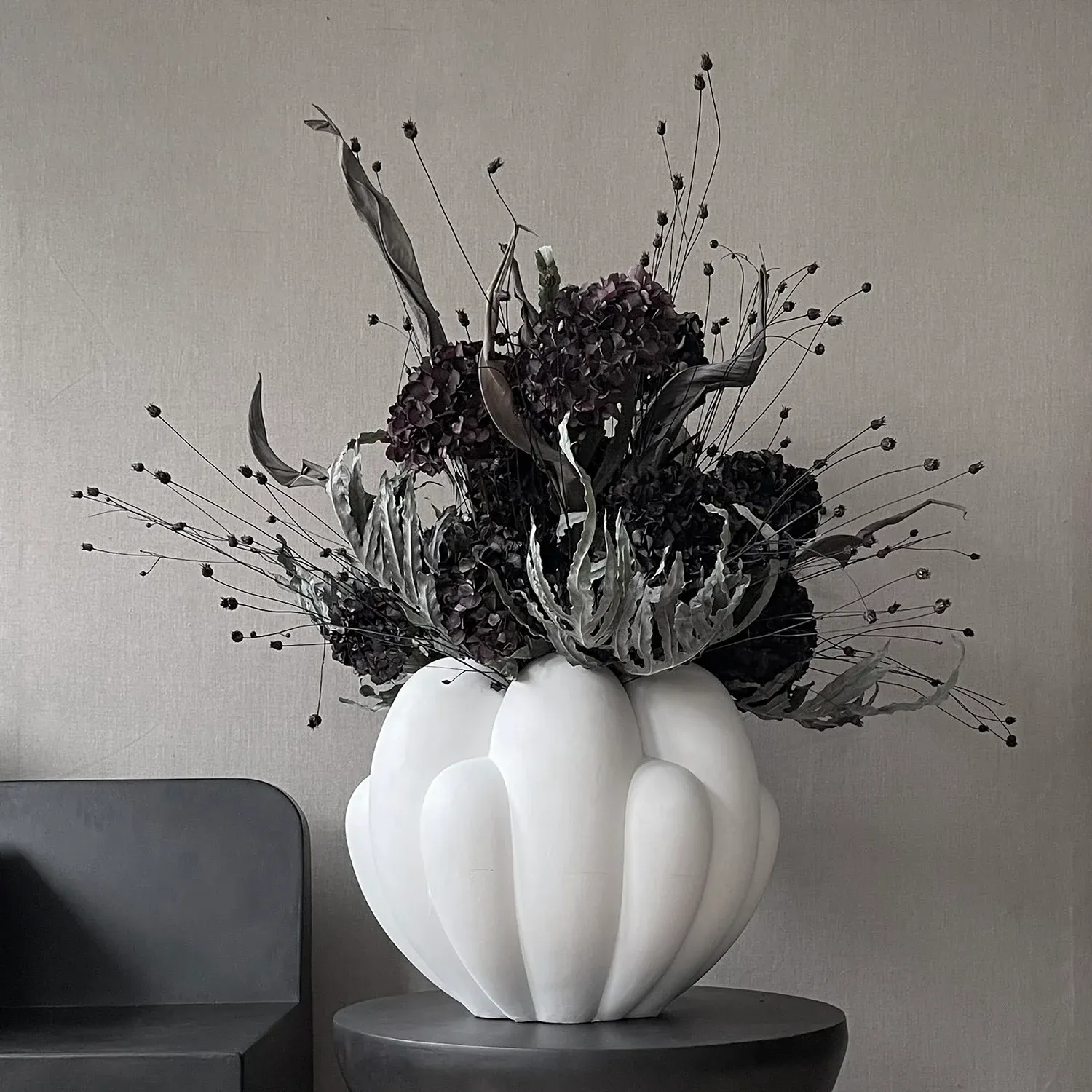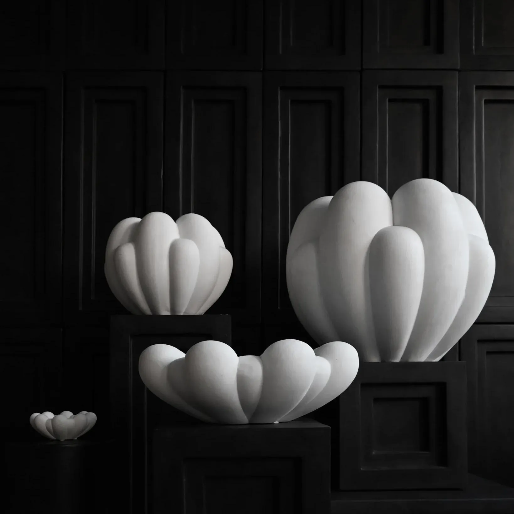 В коллекцию входят: скульптурные керамических ваз и декоративные чаши, подчеркивающих мягкость и органичность форм. Элегантная керамика Bloom отличается тем, что несколько цветочных листьев переходят друг в друга, напоминая о различных стадиях развития цветка - от закрытого к открытому.