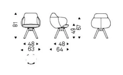 Вращающееся кресло на стальной раме, покрытой лаком с тиснением graphite (GFM69). Ножки выполнены из окрашенного ясеня Canaletto (французский орех), жженого дуба (ferb) или матово-черного дерева с открытыми порами (fr 73). Сиденье и спинка обиты тканью, синтетической кожей или мягкой кожзаменителем в соответствии с образцом. Чехол не снимается.