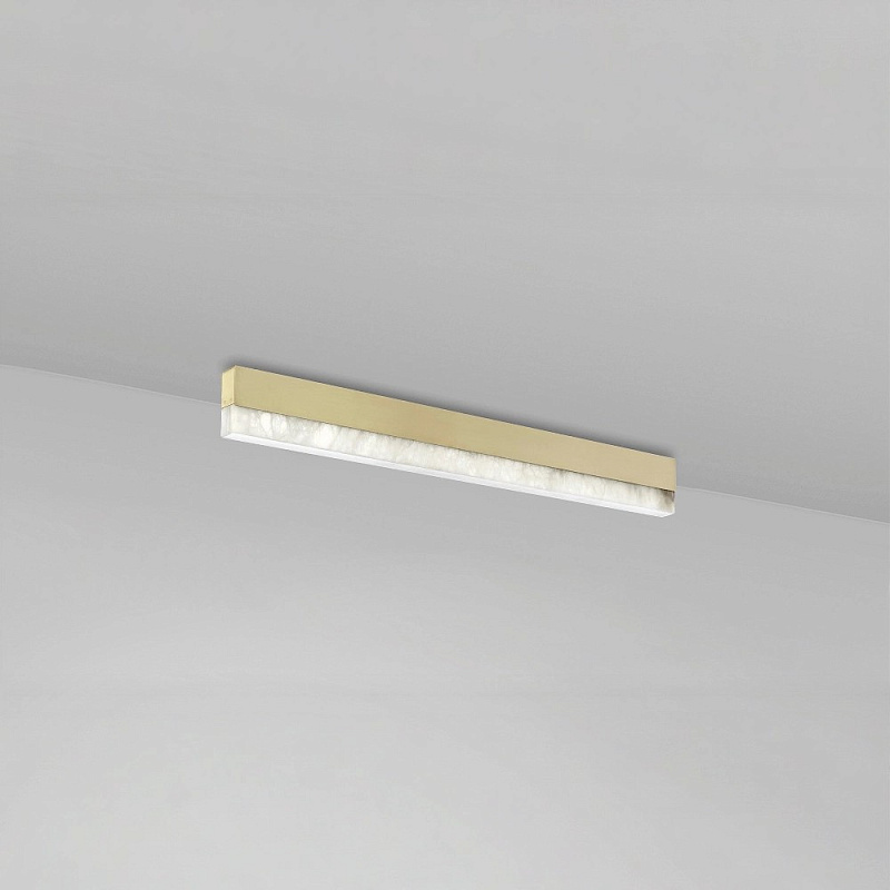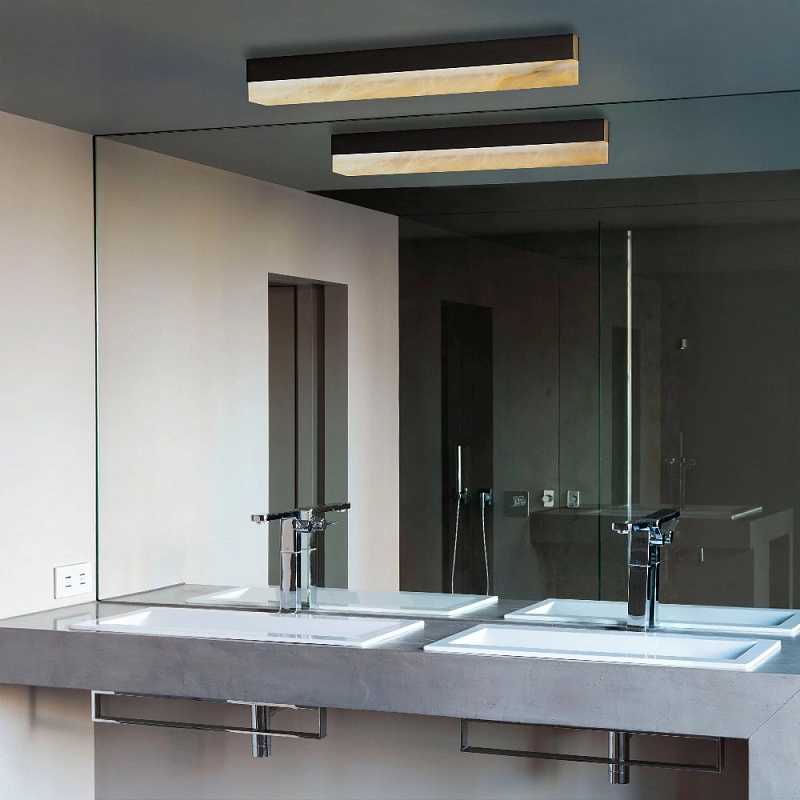 Плафон в форме бруска из полированного алебастра скрывает светодиодный источник, равномерно распуская свет.
