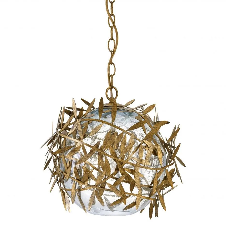 [~DETAIL_TEXT] => Подвесной светильник BRAMBLE PENDANT, изготовленный из переработанного стекла , обернут замысловатой гирляндой из металла