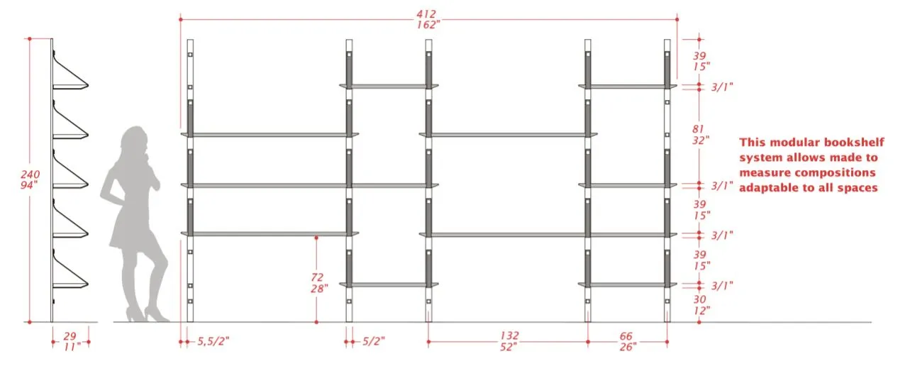 Дизайнерский книжный шкаф, который можно просто прикрепить к стене. Имеет металлическую раму, окрашенную в один из оттенков цветовой палитры отделки.