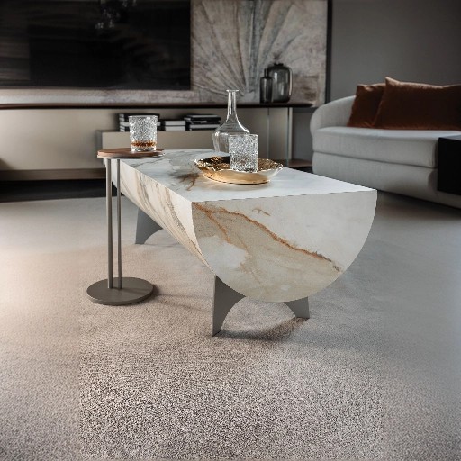 Caesar представляет собой внушительную полуколонну с мягкими и сглаженными линиями, которая выполнена из формованной керамики и поэтому выделяется очарованием, характерным для скульптуры. Концепция этого современного столика вдохновлена искусством Де Кирико, в частности, колоннадами, изображенными итальянским художником на его сказочных и загадочных картинах.