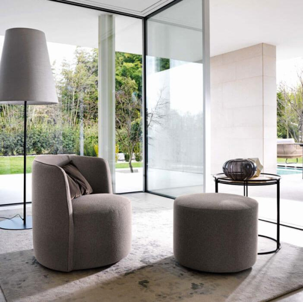 Круглые и мягкие силуэты небольшого кресла, которое становится уютным гнездом. Неформальный шрифт подчеркивается границей с контрастным цветом.