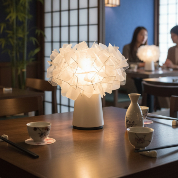 Светильник представляет собой белый металлический корпус, который украшен абстрактными “цветами” из пластика. Внутри цветочной шапки находится LED лампа. CLIZIA BATTERY выглядит необычайно нежно и испускает мягкое рассеянное свечение, которое приятно для глаз.